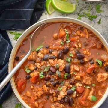 Veggies: I often make chili with bell pepper. It’s a great addition as is corn, sweet potato, butternut squash, mushrooms, carrots, etc. You can pretty much add any vegetable to chili. You can also substitute the red chili flakes for fresh peppers like jalapeño, Anaheim or poblano.