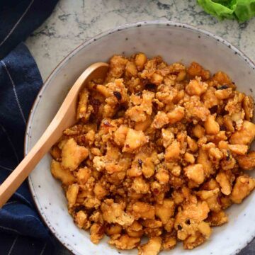 These crispy tofu crumbles can be used in recipes that call for ground pork or ground beef.